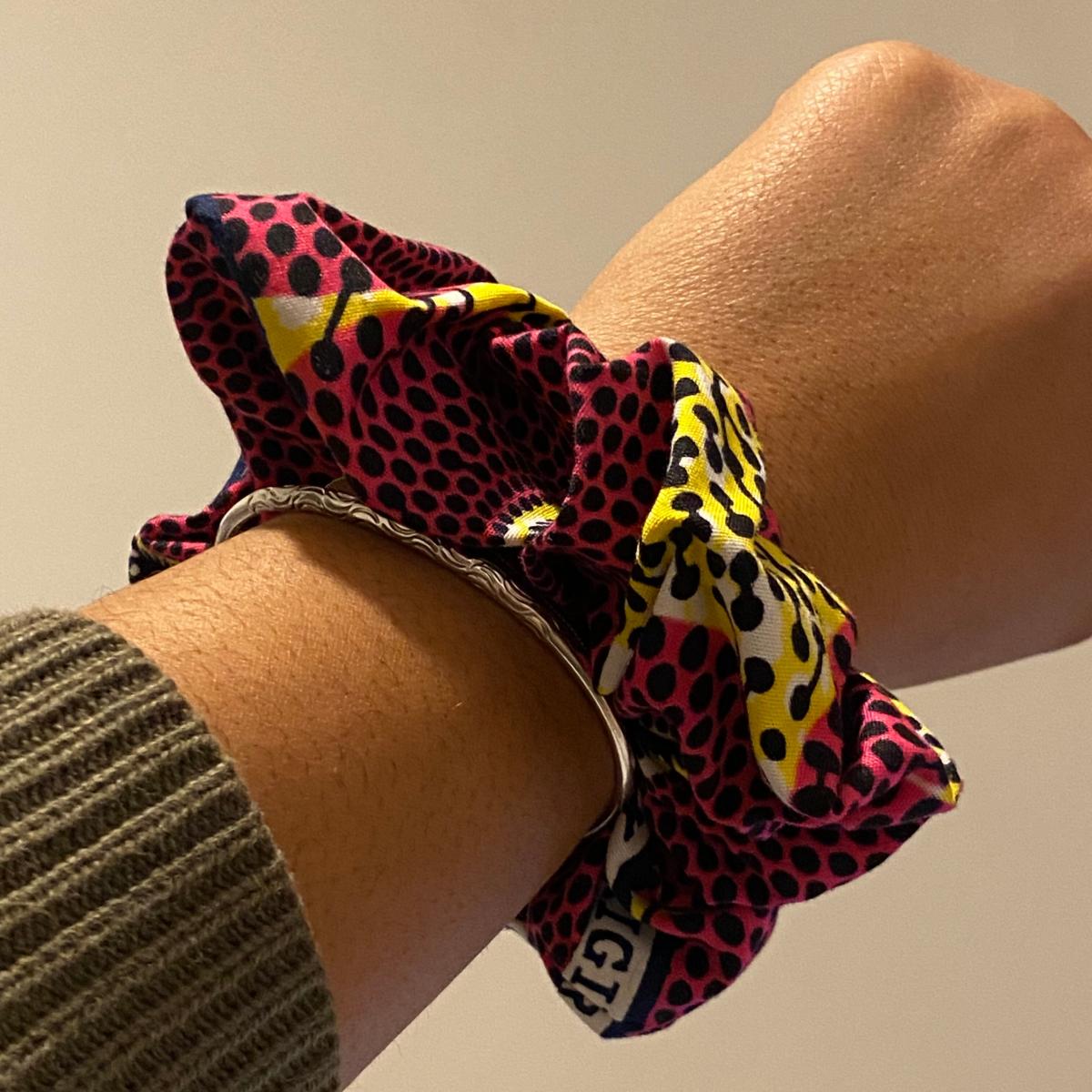 Confortable à porter et facile à ajuster, notre chouchou en wax bleu ajoute une touche culturelle et colorée à vos coiffures. Faites ressortir votre personnalité avec ce chouchou unique en son genre, conçu pour celles qui aiment se démarquer. Optez pour le style et la qualité avec notre chouchou en wax bleu, l'accessoire indispensable pour toutes les fashionistas.